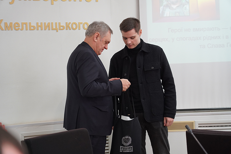 Найемоційнішим моментом заходу став виступ сина Героя — Андрія Орищенка. Від імені університетської спільноти Олександр Черевко вручив родині пам’ятні подарунки, запевнивши, що ім’я Романа назавжди вписане в золотий фонд історії університету.