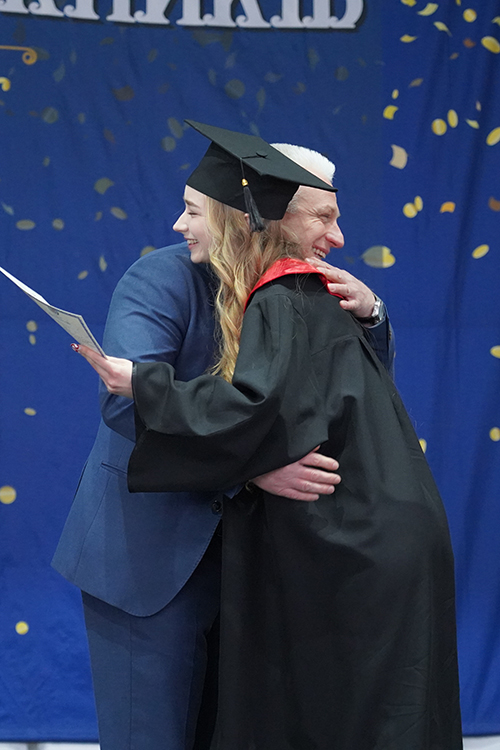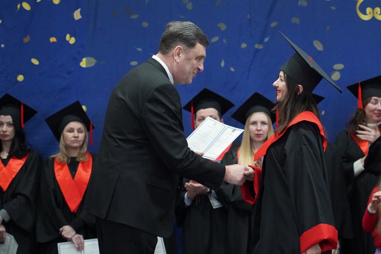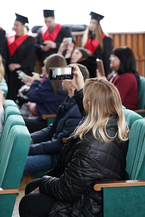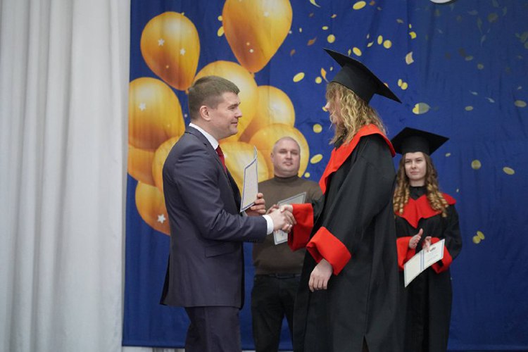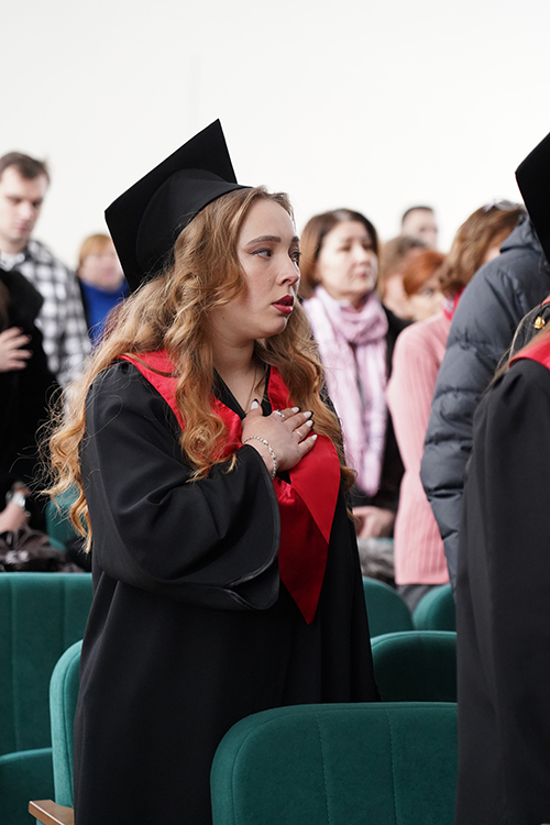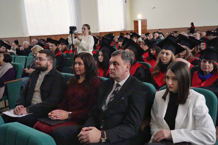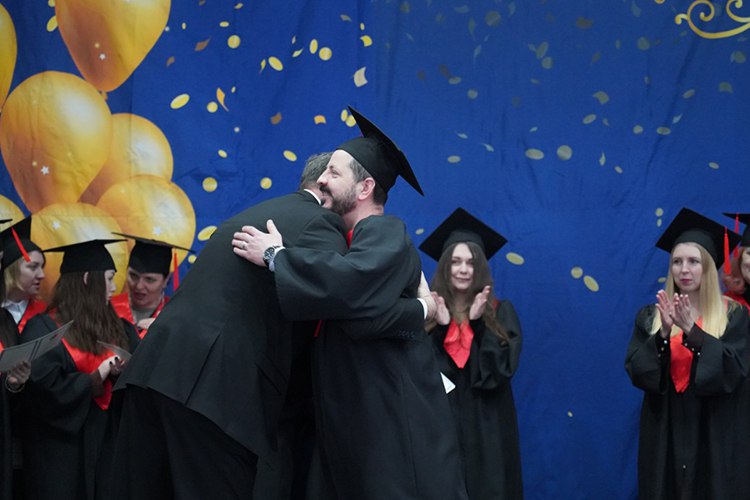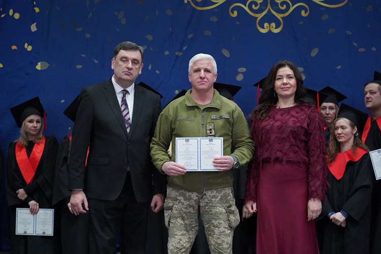 Вітаючи випускників, перший проректор Василь Мойсієнко особливо відзначив тих, хто поєднує навчання із захистом України на фронті: «Частина наших випускників і викладачів виборюють нашу незалежність на фронтах російсько-української війни. При цьому вони успішно здобувають вищу освіту. Маю за честь вручити сьогодні таким людям дипломи».