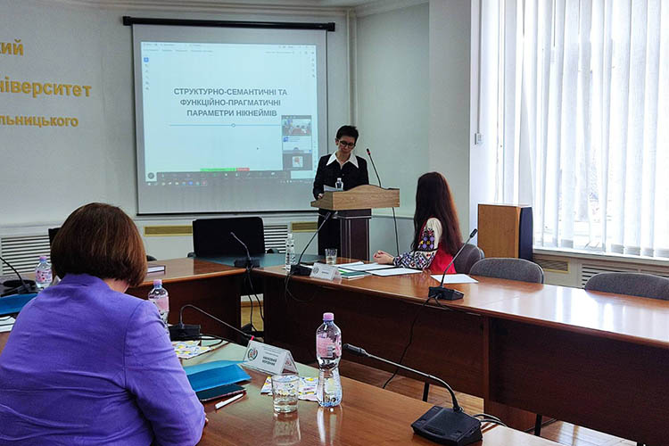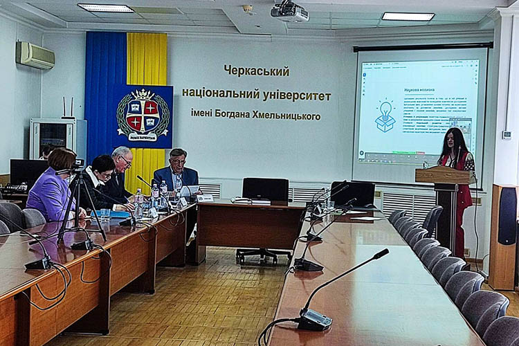 У Черкаському національному університеті імені Богдана Хмельницького 1 квітня 2026 року відбулося засідання разової спеціалізованої вченої ради з правом прийняття до розгляду та проведення захисту дисертації Ірини Омелюх «Структурно-семантичні та функційно-прагматичні параметри нікнеймів» на здобуття наукового ступеня доктора філософії з галузі знань 03 «Гуманітарні науки» за спеціальністю «Філологія».