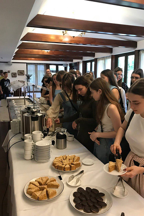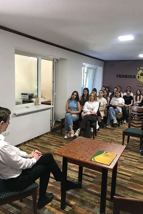 Одне з перших занять пройшло на базі готелю-партнера кафедри туризму і готельно-ресторанної справи «Україна». Менеджер готелю Юрій Кривошия ґрунтовно розповів про усі особливості готельно-ресторанного бізнесу і зокрема, про діяльність готелю Україна. Познайомив студентів з номерним фондом. Керуюча готелем Наталя Щербініна наголосила на багаторічній плідній співпраці з кафедрою, запросила і надалі залучати наших студентів до практичних занять і для проходження практики, оскільки багато випускників нашого ЗВО стали співробітниками готелю. Особливо приємним для студентів стало запрошення на каву-брейк, де керівництво готелю пригощали смаколиками й кавою.