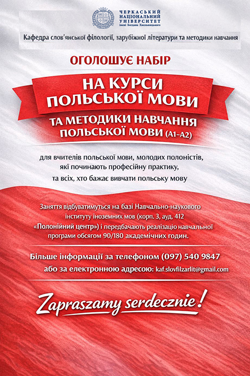 Курси польської мови та методики навчання польської мови (А1 —А2))
